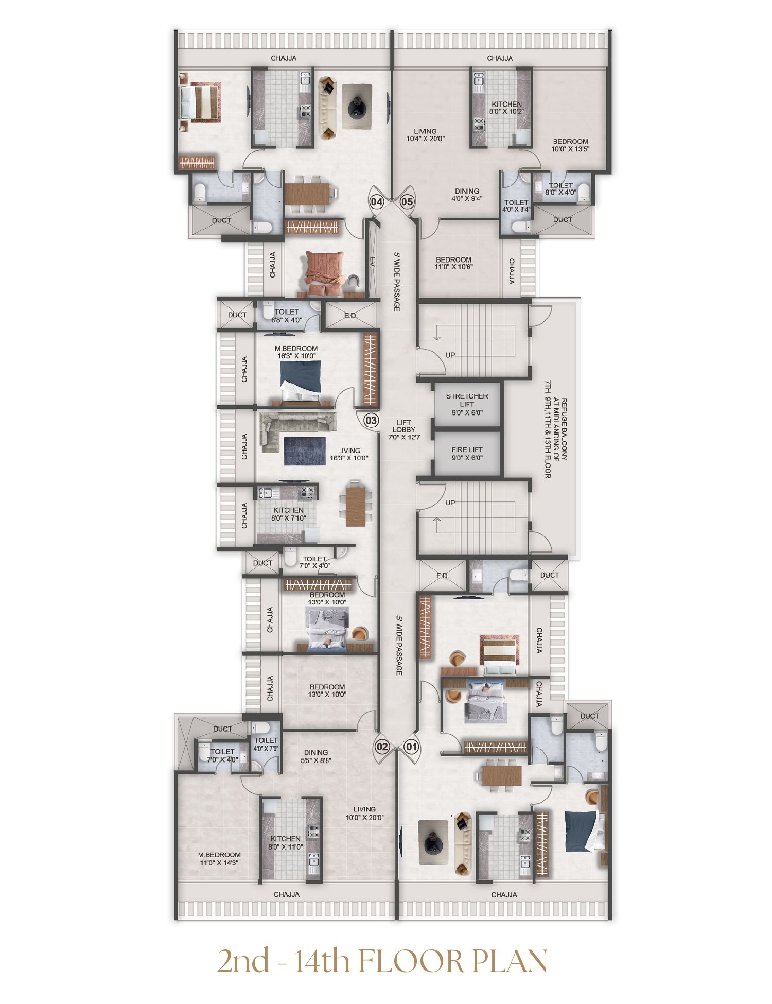 1 Stretcher and 1 passenger high-speed automatic lifts